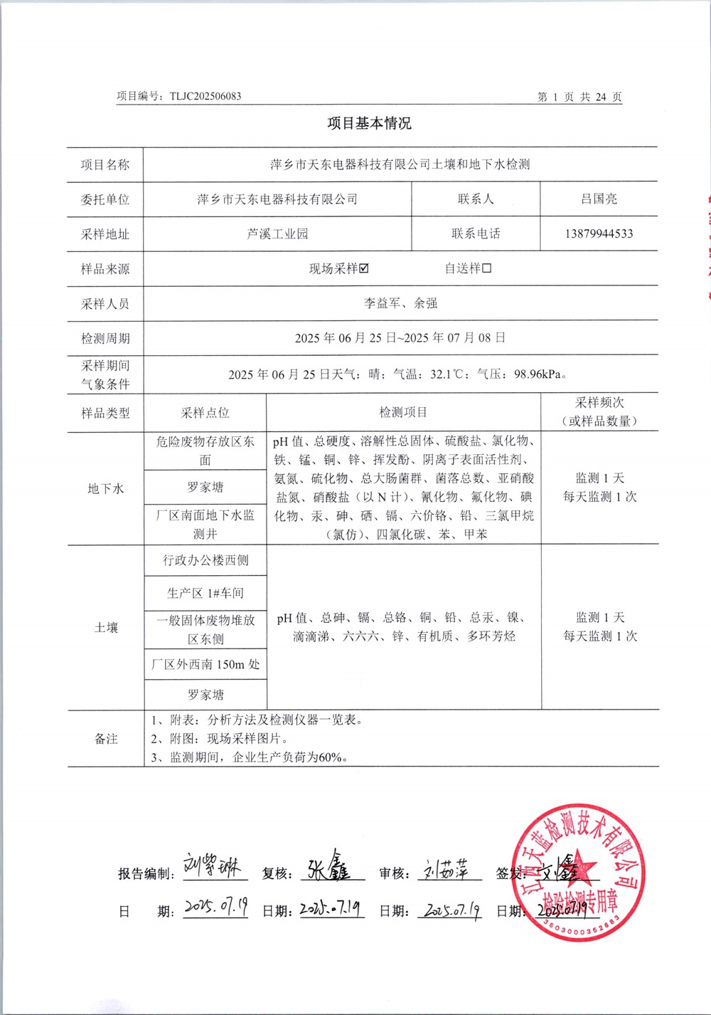 天東電器土壤和地下水檢測2025年